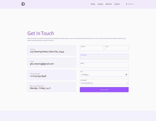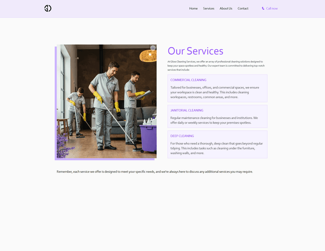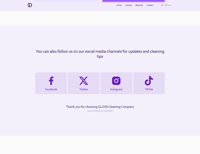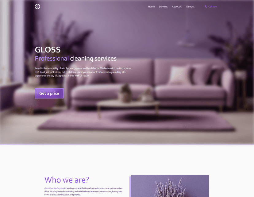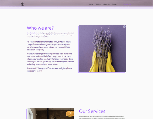 A Landing page for Gloss cleaning services company.