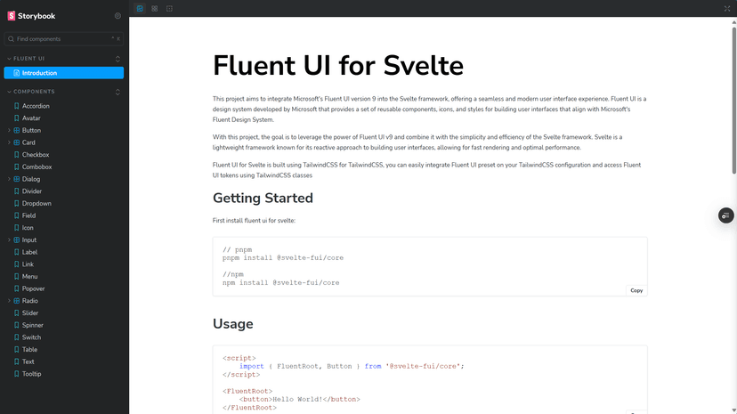 Implementation of Microsoft Fluent UI design system for Svelte framework using TailwindCSS