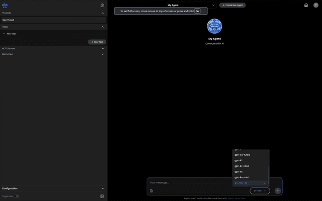Obot is an open source AI agent platform. Key features include: - Ability to build agents to support a variety of usecases including copilots, assistants, and autonomous agentic workflows. - Integration with leading LLM providers - Built-in RAG for your data - Easy integration with custom or private web services and APIs - OAuth 2.0 authentication